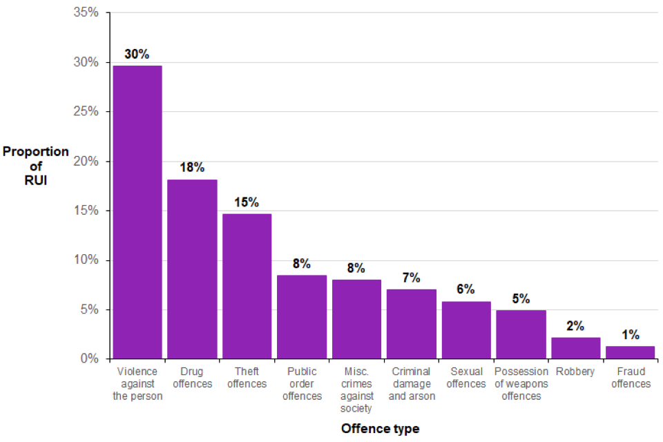- a third (33%) of offences for which people were in custody, were violence against the person offences