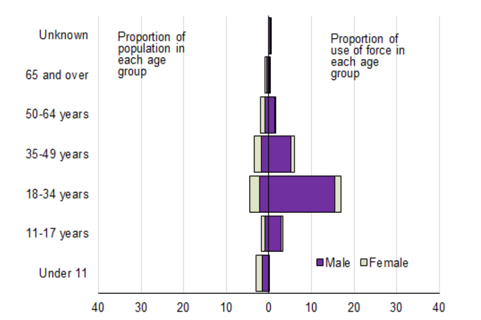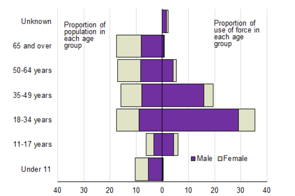 Police officers must record the details of any incident where they deployed force tactics through a ‘use of force report’. Where an incident involved more than one person or officer, each officer who used force must complete one use of force report, per person, detailing their own use of force. As such, a singular event or individual may feature in multiple use of force reports.