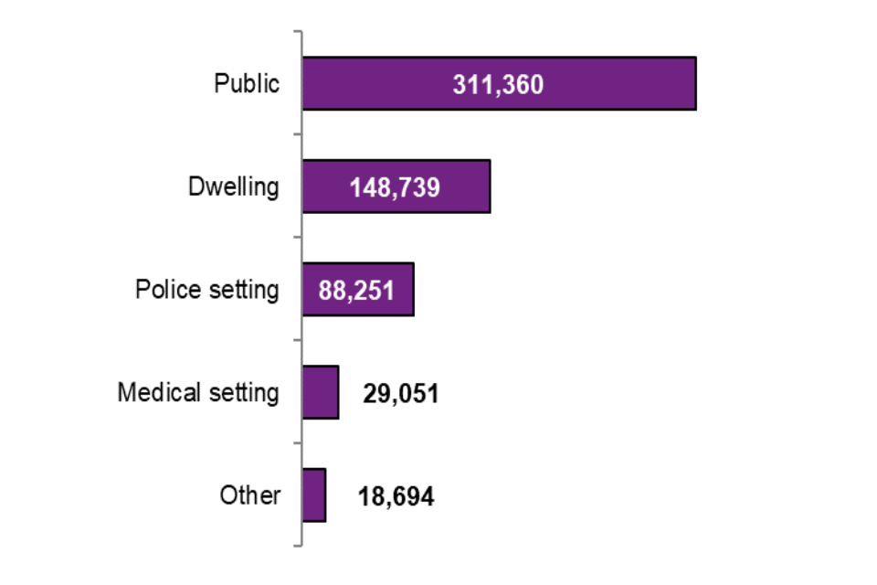 over half (55%) of recorded incidents included a public location (311,360 incidents)