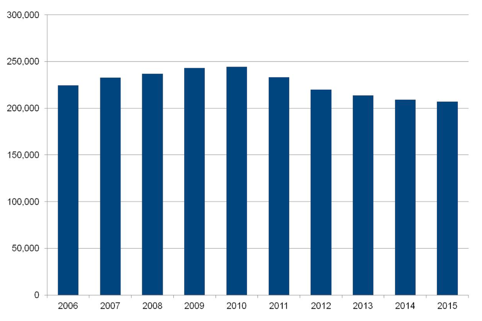 Figure 2: Police workforce, as at 31 March 2006 to 2015, England and Wales1, 2