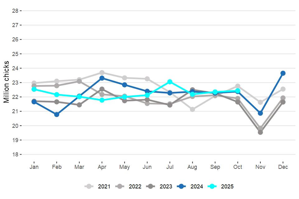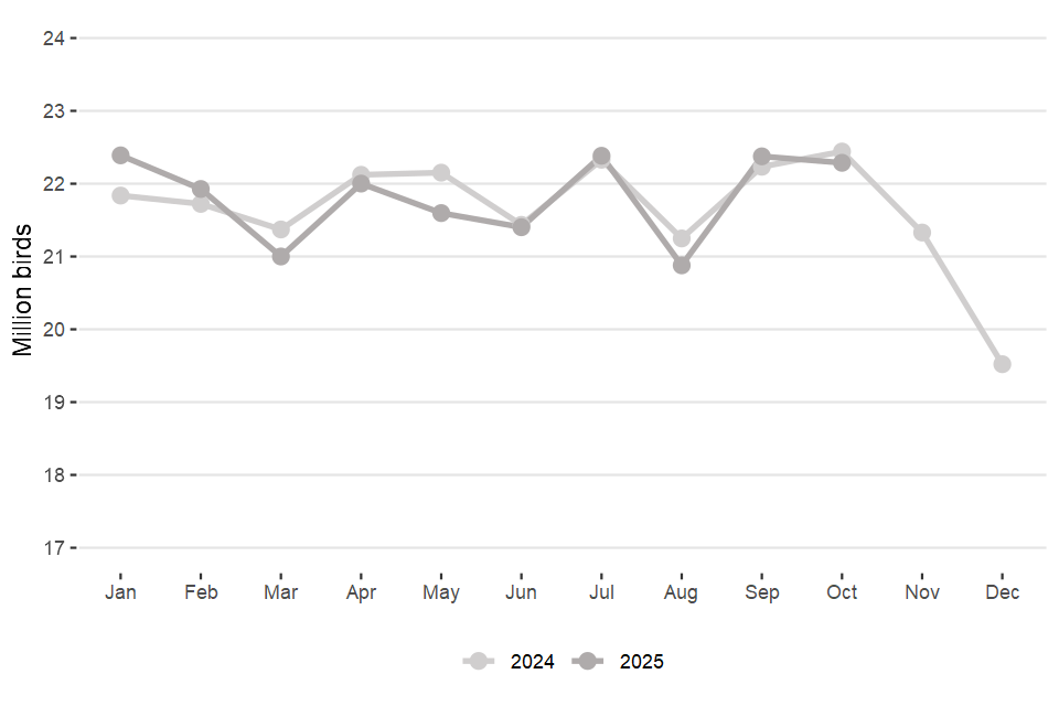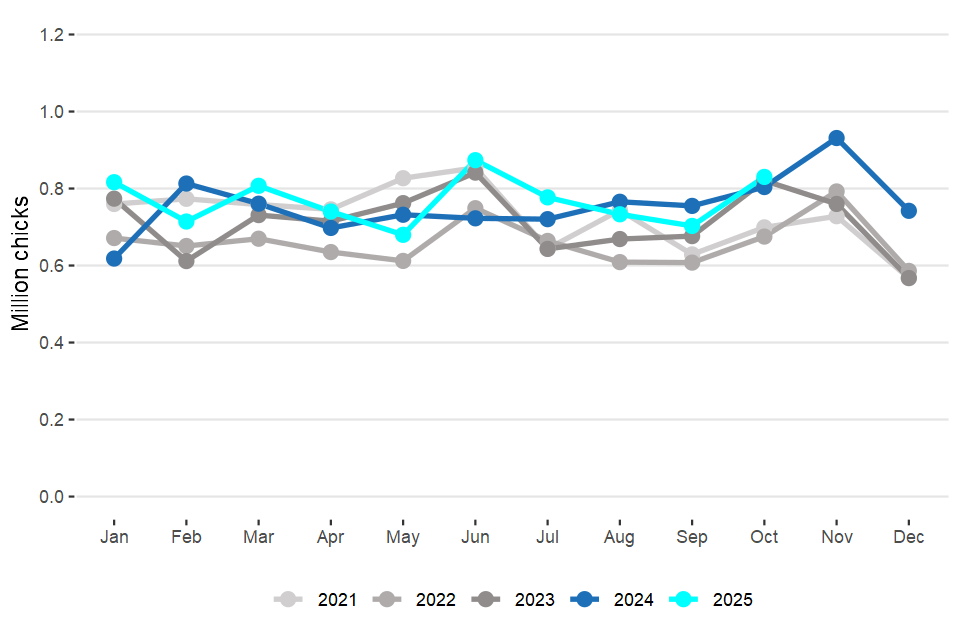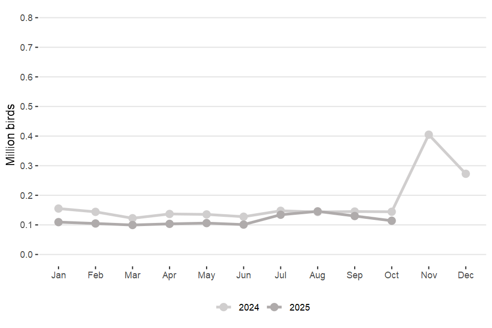 Monthly statistics on the activity of UK hatcheries and UK poultry slaughterhouses (data for October 2025)