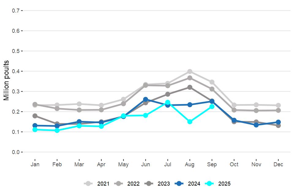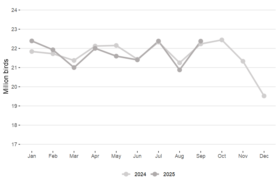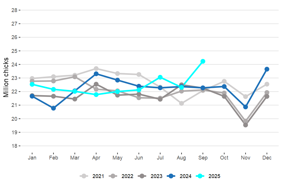 Monthly statistics on the activity of UK hatcheries and UK poultry slaughterhouses (data for September 2025)