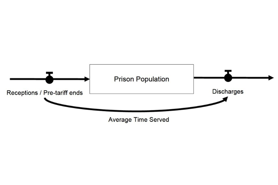 Figure TG2.2: Generic stock-flow structure in the prison population stock-flow models