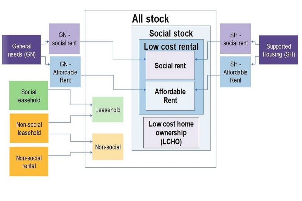 In these statistics social rent refers to all low cost rental units that are general needs or supported housing (excluding Affordable Rent and intermediate rent units). This includes units with exceptions from the Rent Standard.