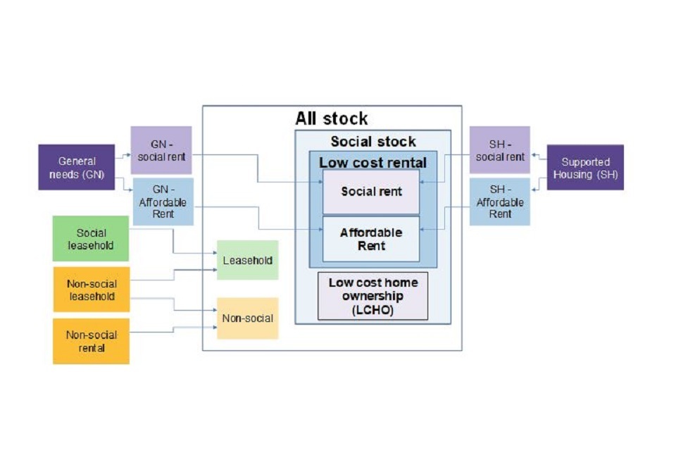 | Social rent | In these statistics social rent refers to all low cost rental units that are general needs or supported housing (excluding Affordable Rent and intermediate rent units). This includes units with exceptions from the Rent Standard. |