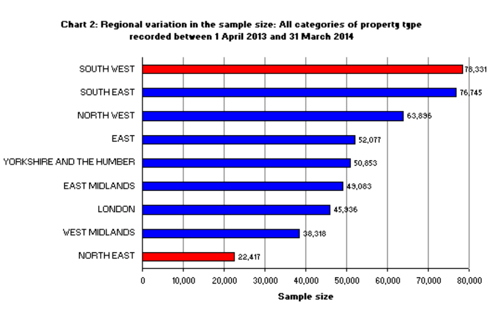 Chart 2: Regional variation in the sample size: All categories of property type recorded between 1 April 2013 and 31 March 2014