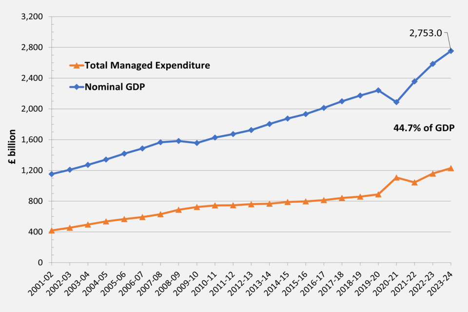 - TME was £1,229.9 billion in 2023-24, an increase of 6.1 per cent on the previous year.