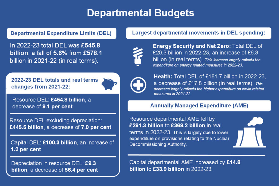 - Total resource DEL was £454.8 billion in 2022-23, a decrease of 9.1 per cent in real terms on the previous year.