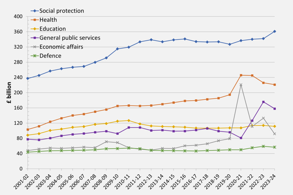 - Spending on administration, composed mainly of pay and procurement, stood at £12.7 billion in 2023-24. This is a rise of 3.9 per cent from the previous year.