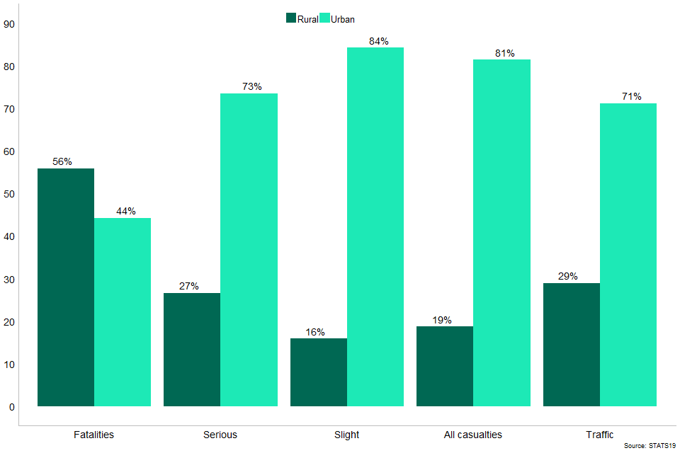 • 56% of pedal cycle fatalities occurred on rural roads compared to 29% of traffic