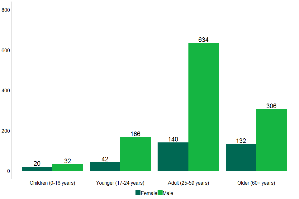 | Male | Adult casualties (25 to 59 years old) | 634 | -7 | -12 |