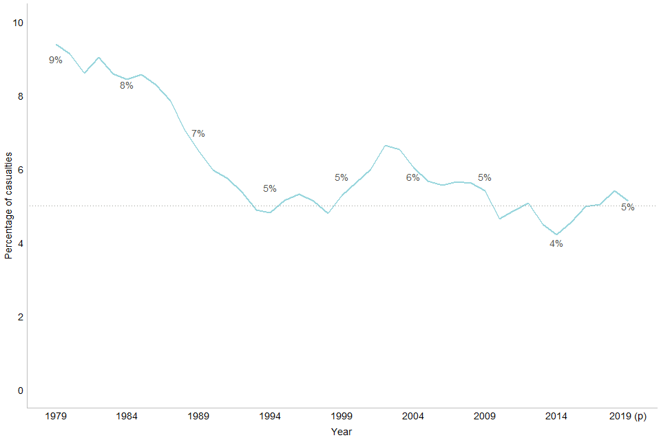 Chart 6: Casualties in reported drink-drive accidents, as a percentage of all casualties, Great Britain: 1979 to 2019
