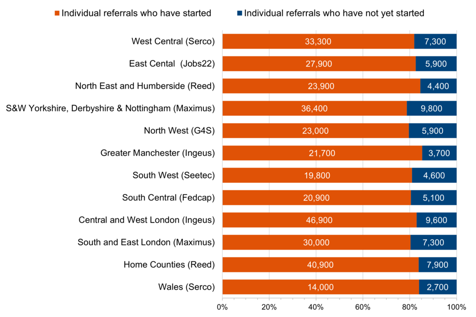 | Area | Provider | Individuals referred | Starts | % of individuals referred that have started |