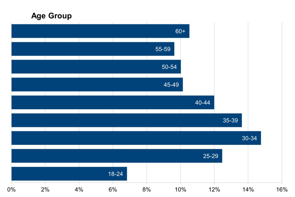 of the 340,000 individuals who have started on the scheme, 58% were recorded as male, and 42% recorded as female. 63% are aged between 25 and 49 years old, with 7% aged between 18 and 24 years old and 30% aged 50 years or over
