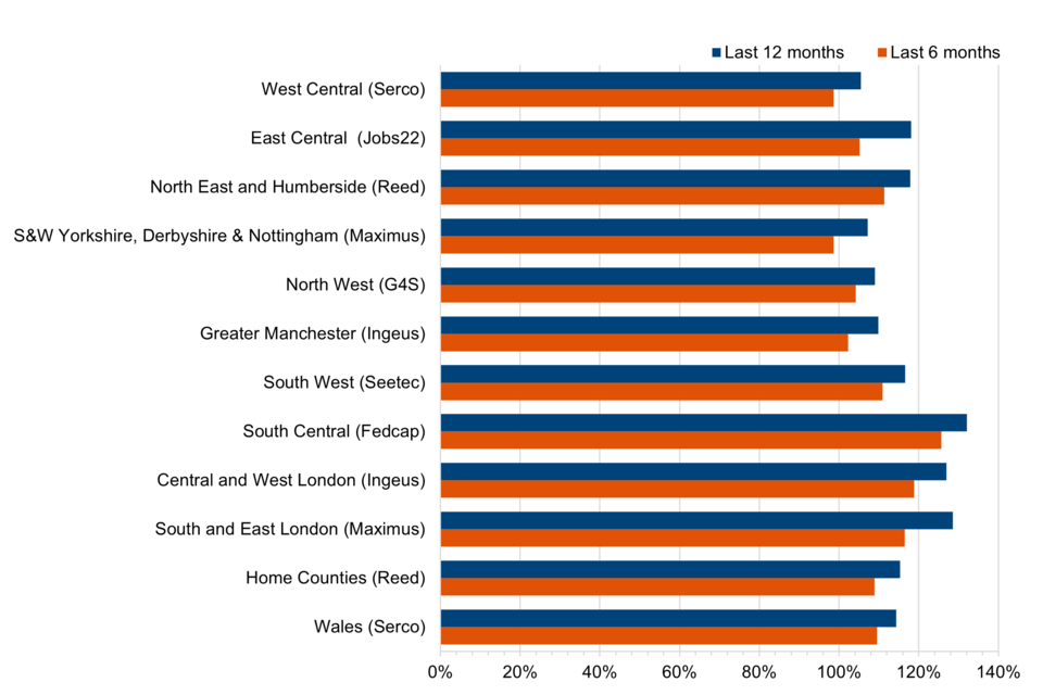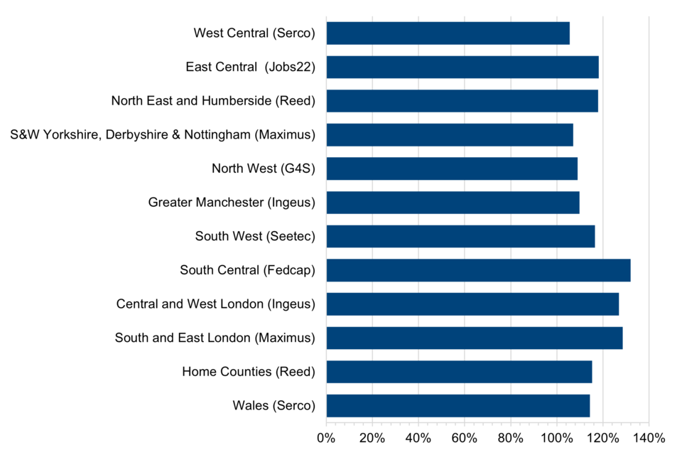 | Central and West London | Ingeus | 46,900 | 5,300 | 4,200 | 127% |