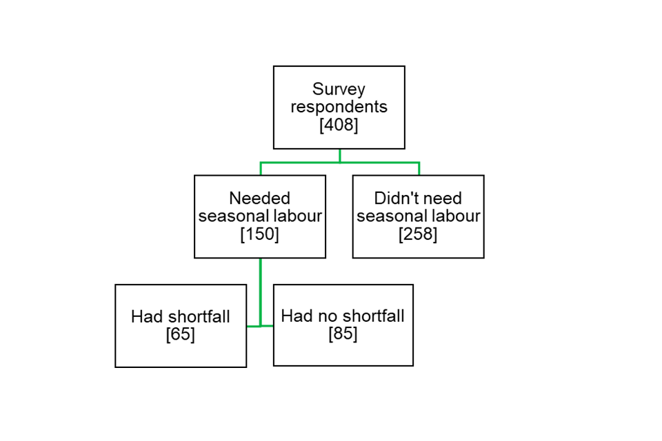 Figure 1: Breakdown of survey respondents with horticulture who needed seasonal labour and had a shortfall: April to June 2021