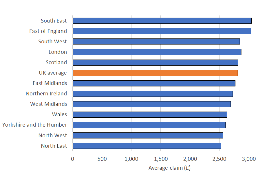 - the average claim for females is also lower at £2,200 compared to the average claim for males of £3,100.