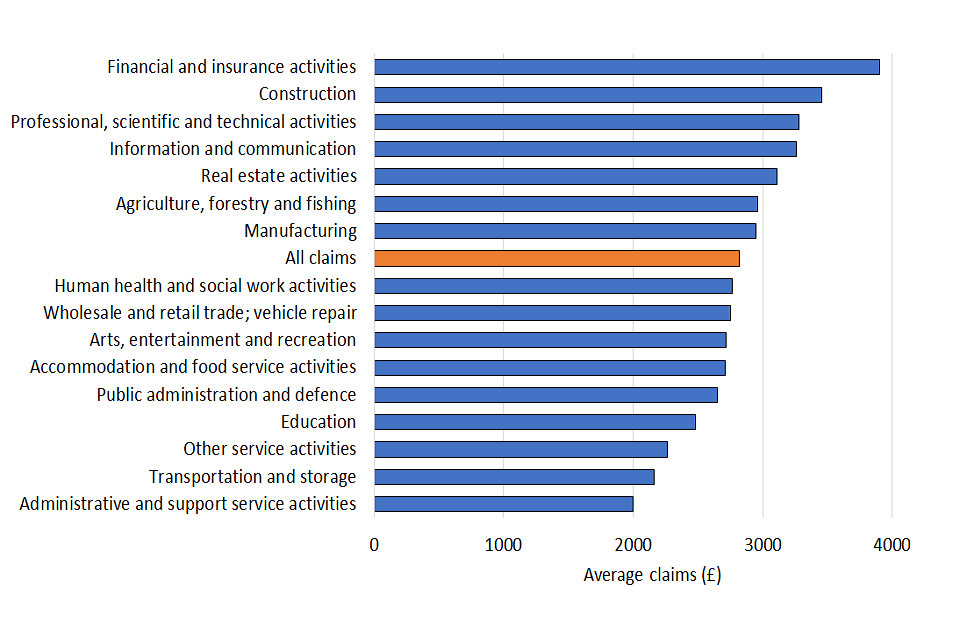 For the fourth Self-Employment Income Support Scheme grant the average value per claim was £2,800. Around two-thirds of the potentially eligible population are male (2.3m). The average claim for females is lower at £2,200 compared to the average claim for males of £3,100