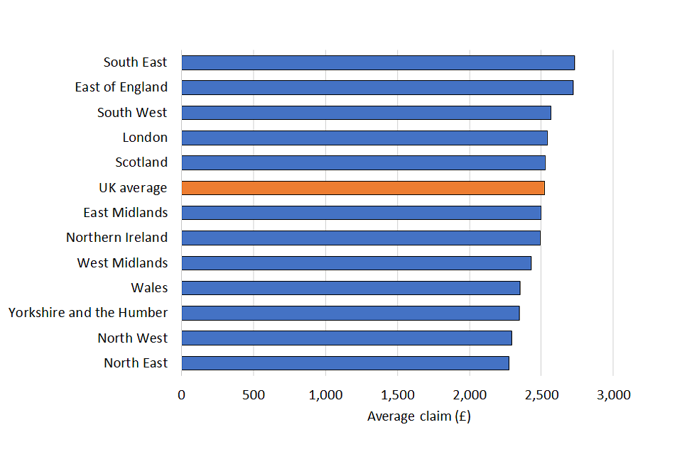 - the average claim for females is also lower at £2,000 compared to the average claim for males of £2,700.