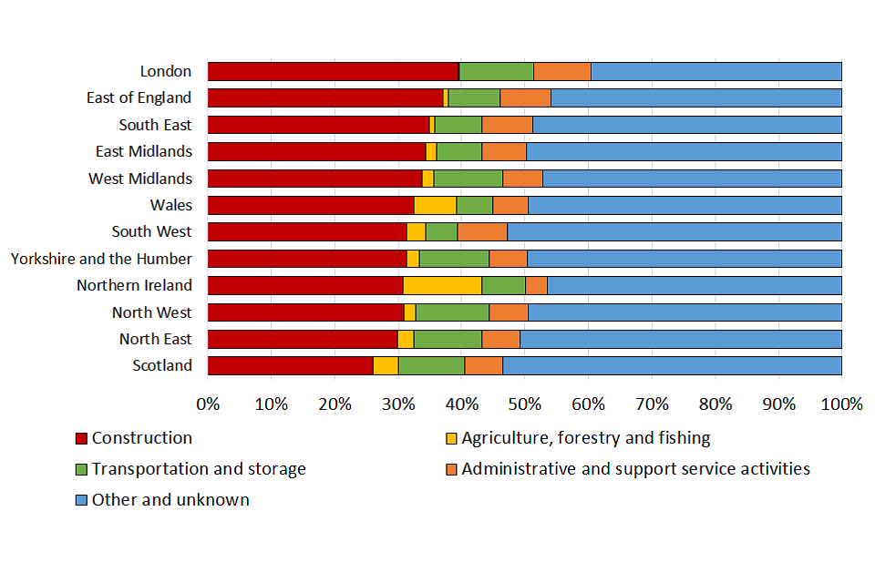- 473,000 cases in the potentially eligible population are included as ‘Unknown and other’ and almost all of these (99%) could not be allocated to a SIC code.