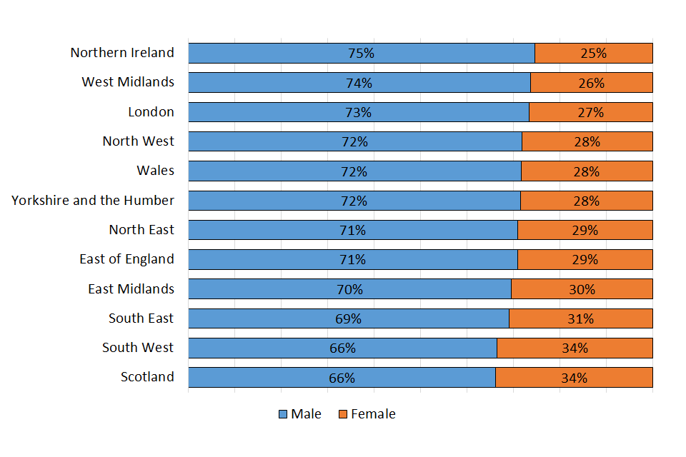 By 31 October HMRC had received 1,663,000 claims from men totalling £4.6 billion compared to 684,000 claims from women for £1.4 billion. Males have a higher take-up rate than females (72% compared to 64%) and their average grant value (£2,700) is higher than the average for females (£2,000).