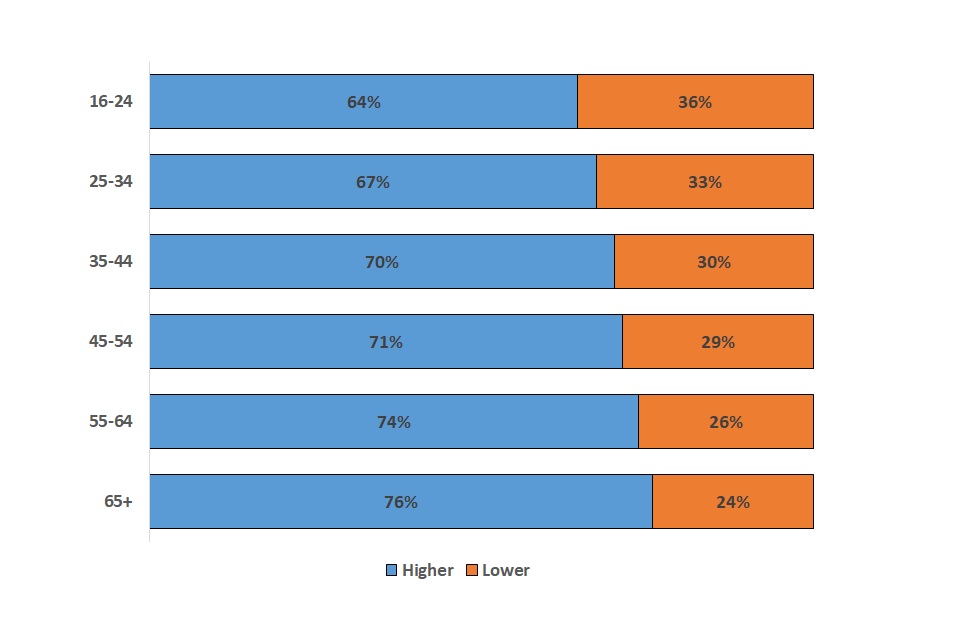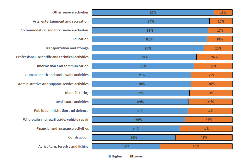 - Among female claimants, 79% claimed the higher grant. Among male claimants, 67% claimed the higher grant. The proportion of higher grant claims rises with age. Individuals in other service activities (87%) and arts, entertainment and recreation (84%) had the highest proportion of claims for the higher grant. The lowest proportions were in agriculture, forestry and fishing (48%) and construction (59%)
