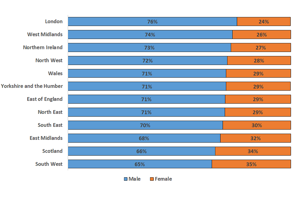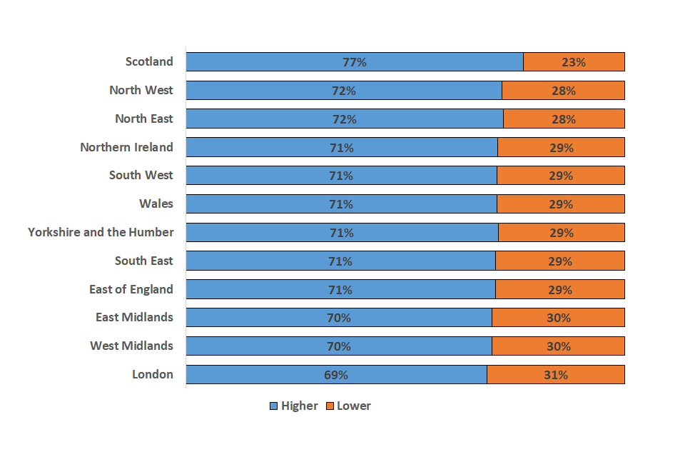 | Yorkshire and the Humber | 71% | 29% |