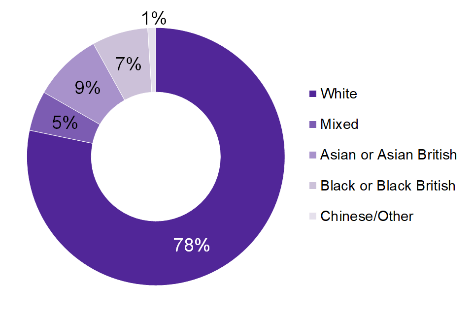 | Black or black British – Caribbean | 3,689 | 48% | 44% | 6% | 2% | 1% |