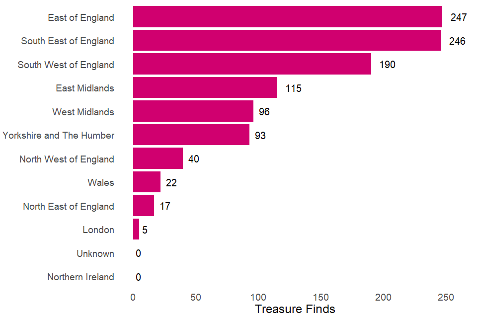 3.2 Figure 3: Reported treasure finds by region, 2020