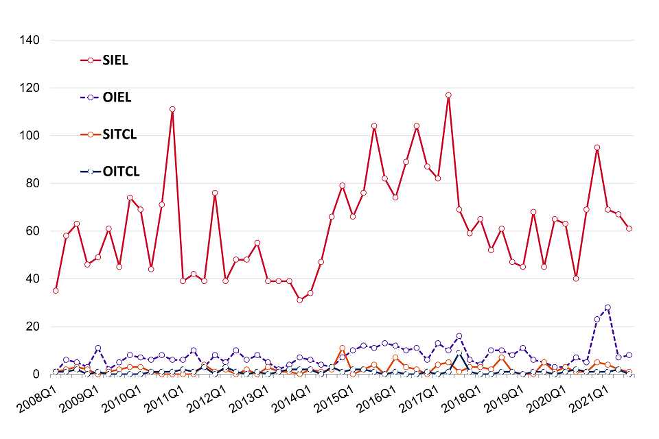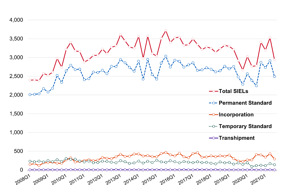 - The decrease from 3,526 SIELs issued in 2021 Q2 to 2,938 in 2021 Q3 is likely to be explained by a decrease in applications submitted, and operational reasons, specifically a temporary shortage in resourcing.