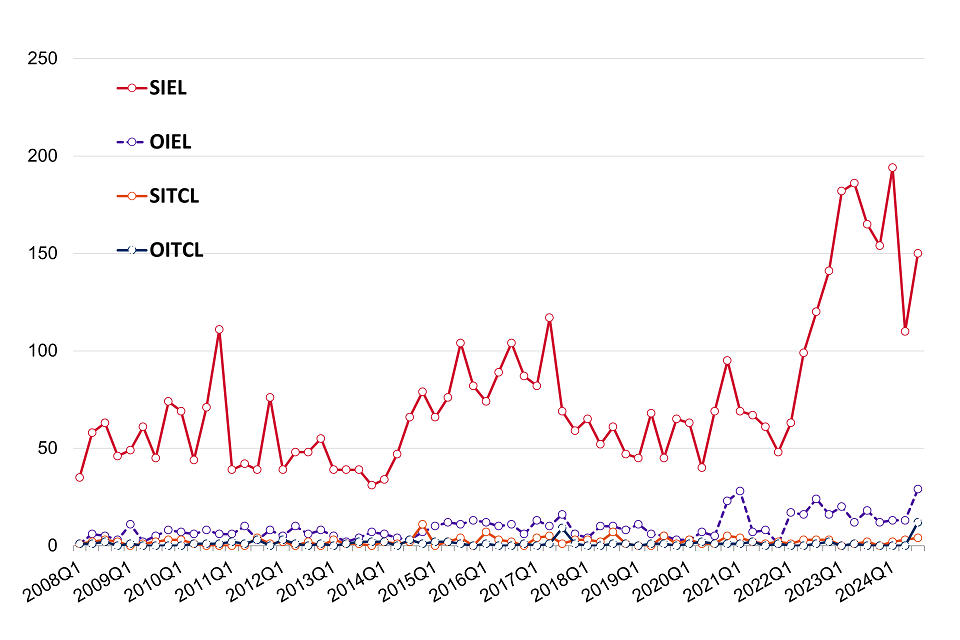 In 2024 Q3, 2,982 SIELs were issued, 107 OIELs were issued, 30 SITCLs were issued and 8 OITCLs were issued. There were 354 OGEL registrations.