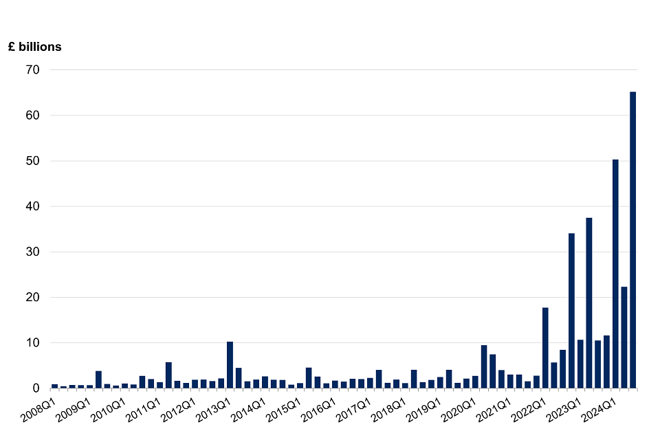 - In 2024 Q3, the total value of all SIELs issued was £65.2 billion, up from £22.3 billion in 2024 Q2.