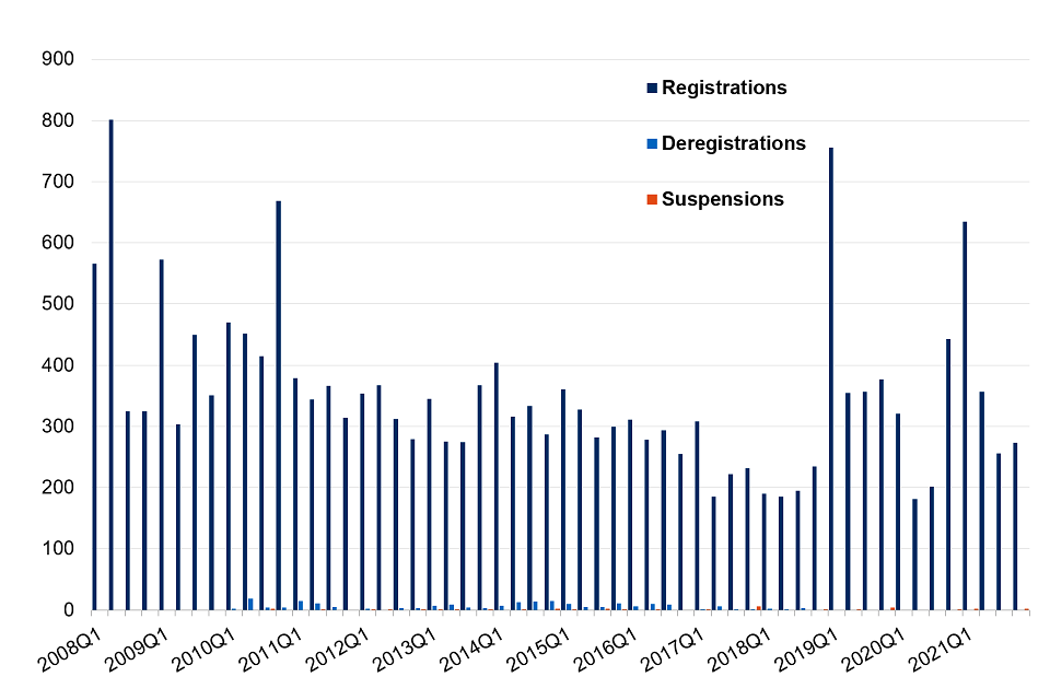 Chart 5: OGEL registrations, suspensions and deregistrations