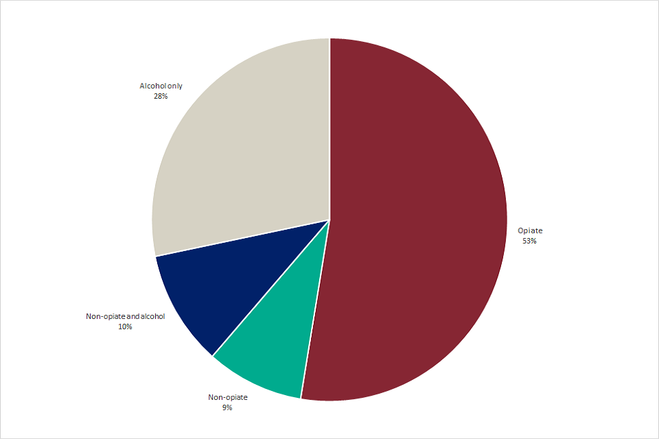 Chart showing the percentages of people in alcohol and drug treatment in 2017 to 2018 for the 4 main substance groups
