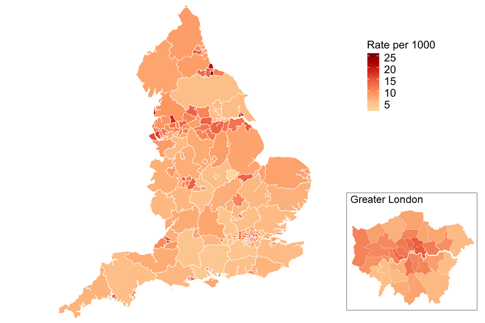 Levels of opiate and crack use vary across England, ranging from 2 people per thousand of the population to 26 people per thousand, with many of the highest prevalence rates in the north of England.