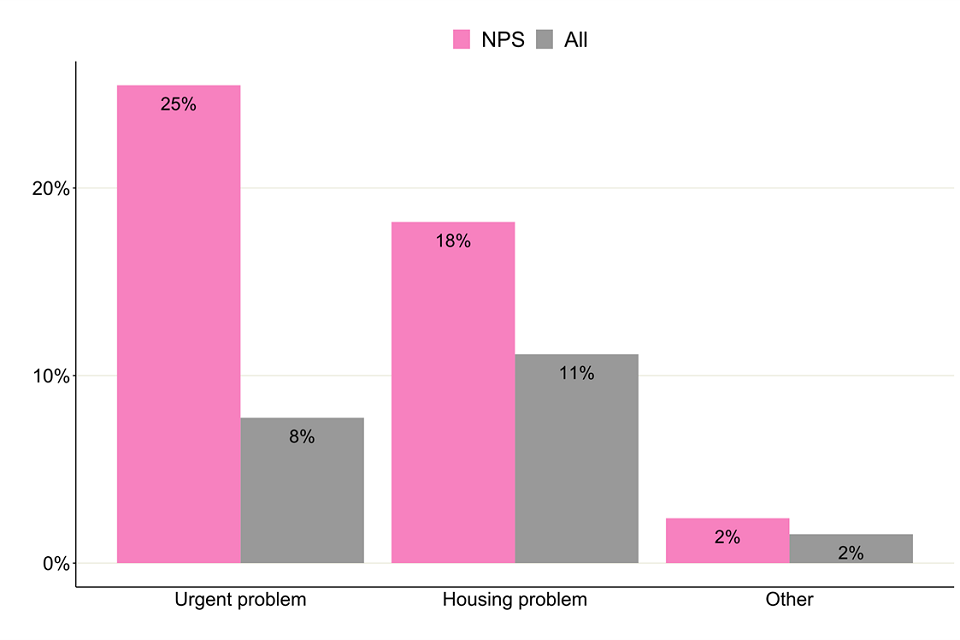 The people in treatment with NPS problems had the highest proportion of housing need, with 44% saying they had a housing problem (urgent or otherwise) when starting treatment.