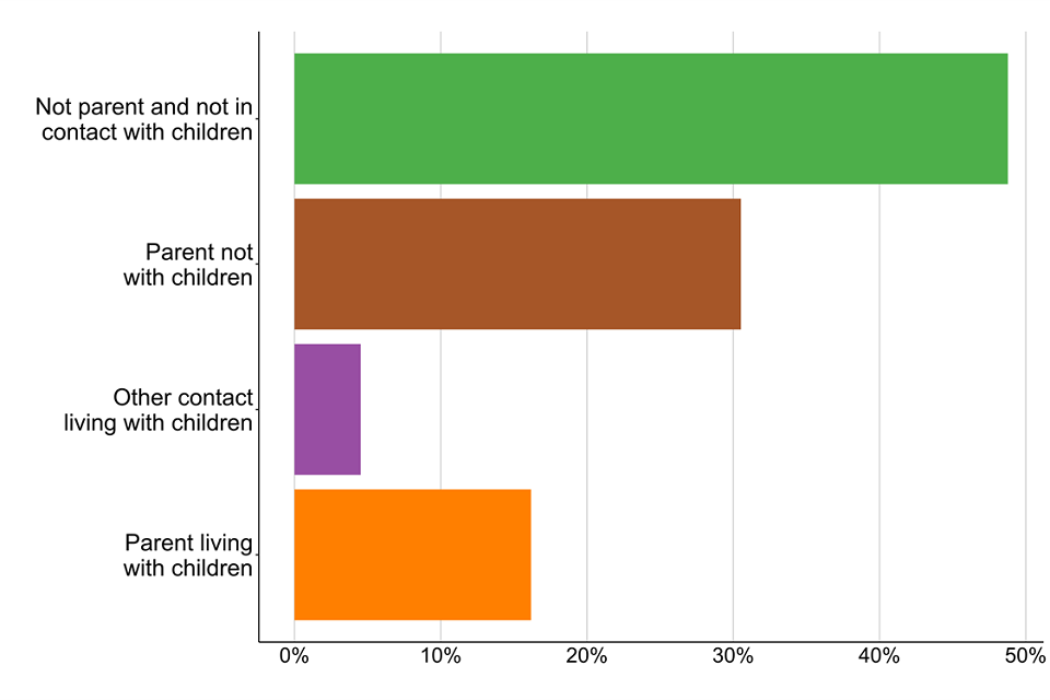 In 2018 to 2019, 21% of people starting treatment were living with children, either their own or someone else’s. And 31% were parents who were not living with their children. This was highest among women in treatment for opiates, where 44% are parents who are not living with their children.