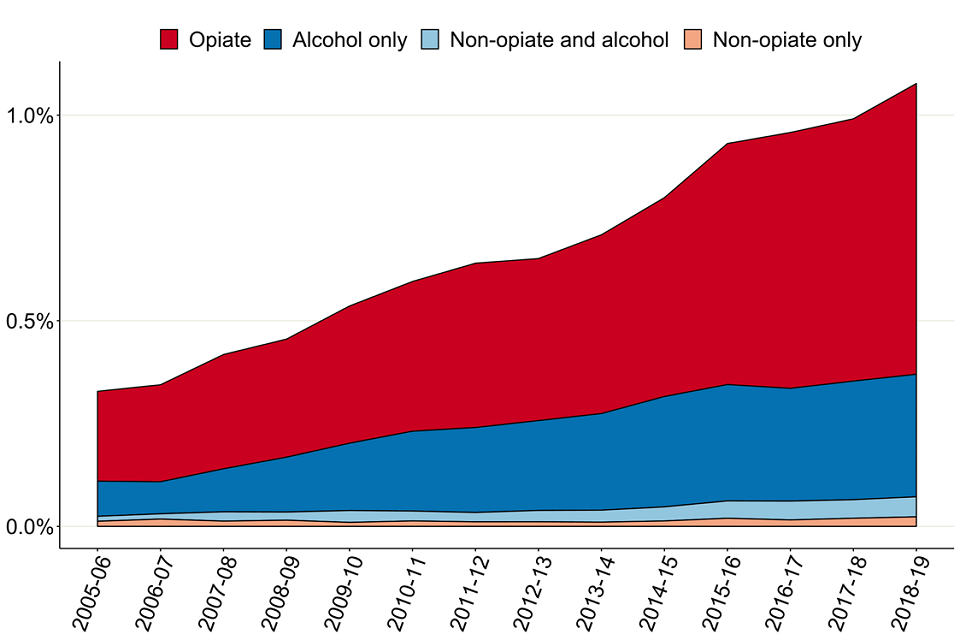 The percentage of deaths ranged from 0.3% for people with non-opiate only problems to 1.4% for those with opiate issues.