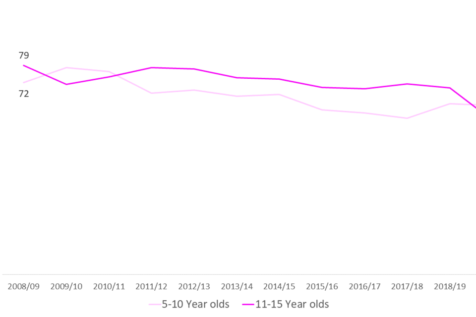 In 2019/20, 64% of children aged 5-10 had visited a library outside of school in the last 12 months, the same proportion to the previous year (64%) and a significant decrease compared to 2008/09 (72%), the start of the data collection.