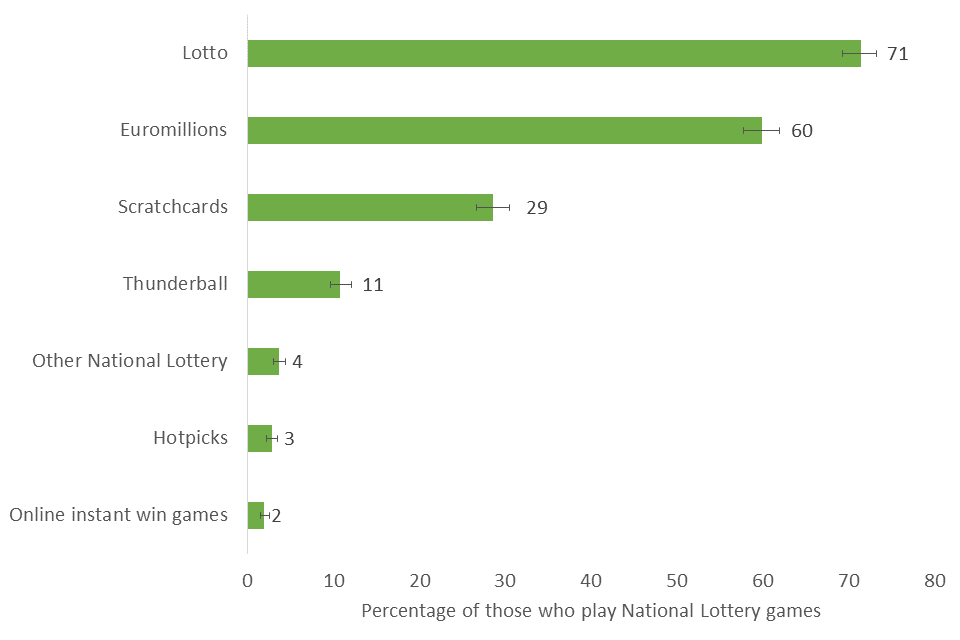 Of those respondents who had played, the most popular National Lottery games were Lotto (71%) and Euromillions (60%).