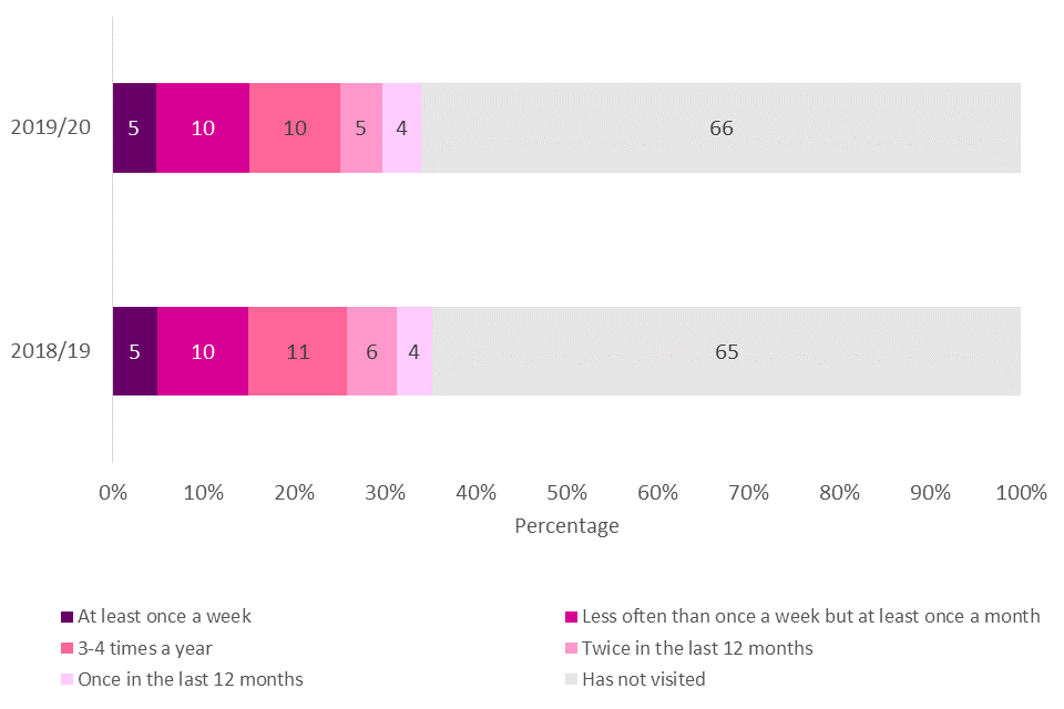 Frequency of visiting libraries, 2018/19 and 2019/20