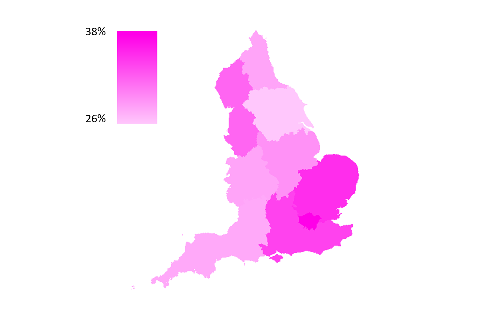 Library usage in London (38% of respondents) was higher than in many other regions (26-29%), including the North East, Yorkshire and the Humber, the East Midlands, the West Midlands, and the South West.