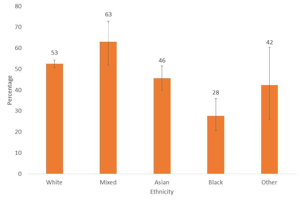 Percentage of respondents who have visited a museum or gallery in the last 12 months by ethnicity, 2019/20
