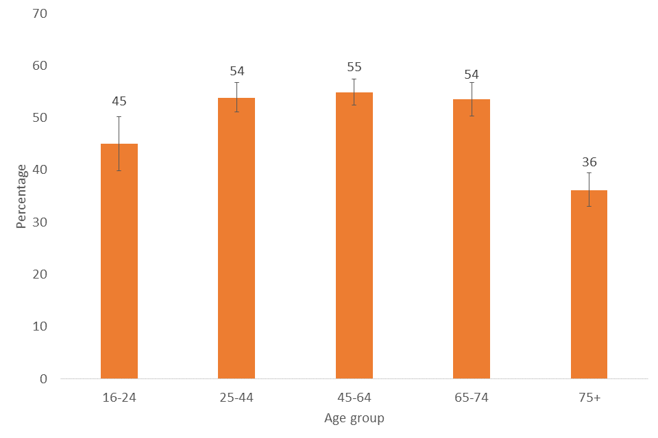 Figure 3.6: Proportion of respondents who have visited a museum or gallery in the last 12 months by age group, 2019/20