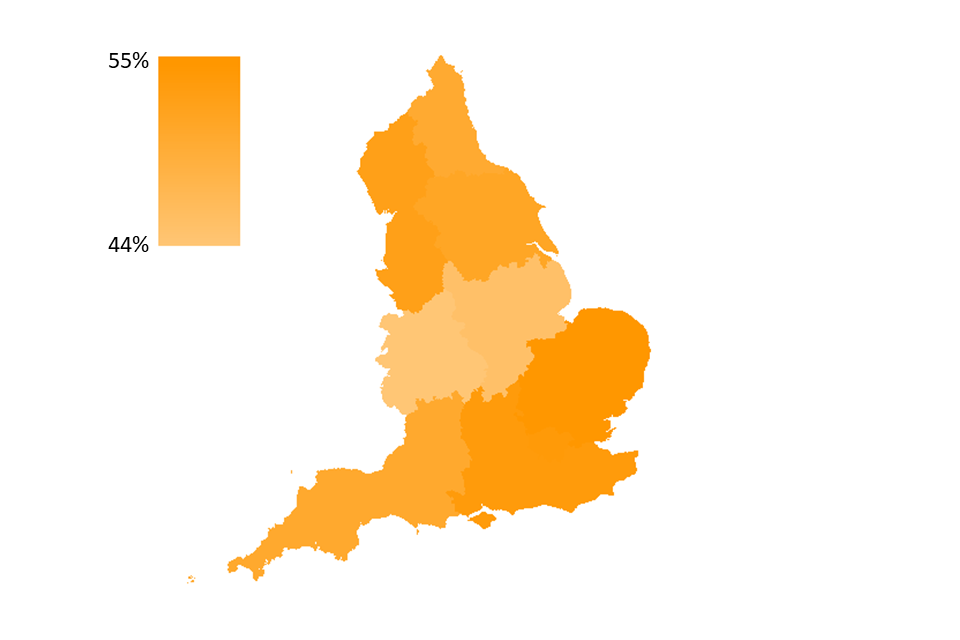 Percentage of respondents who have visited a museum or gallery in the last 12 months by region, 2019/20