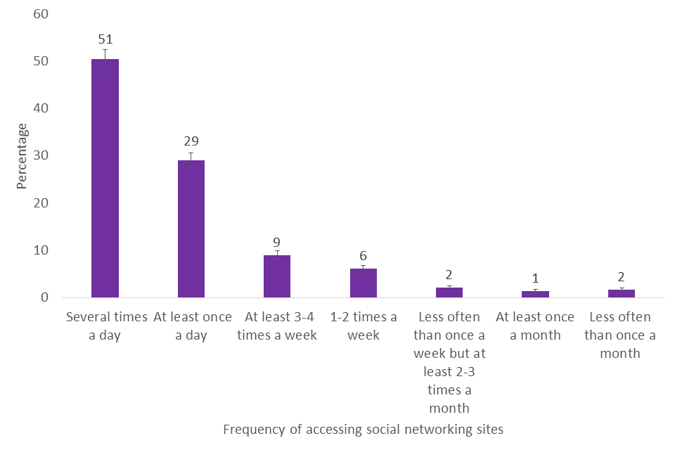Of these, just over half accessed these websites or apps several times a day (51%) and over a quarter (29%) at least once a day.