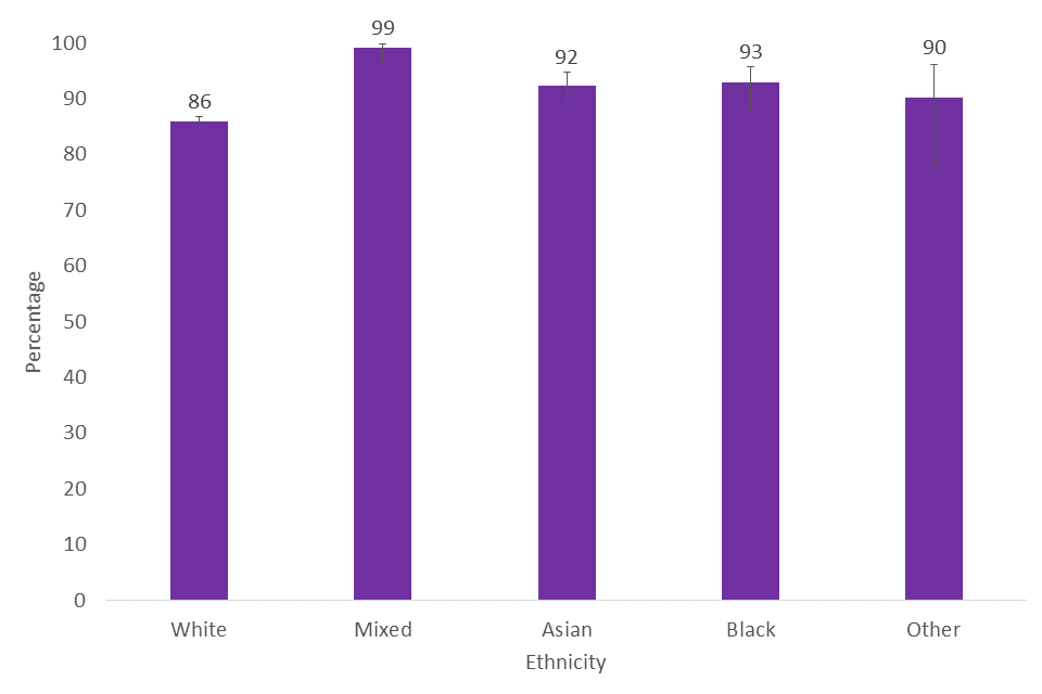 Percentage of respondents who have used social networking sites in the last 12 months by ethnicity, 2019/20