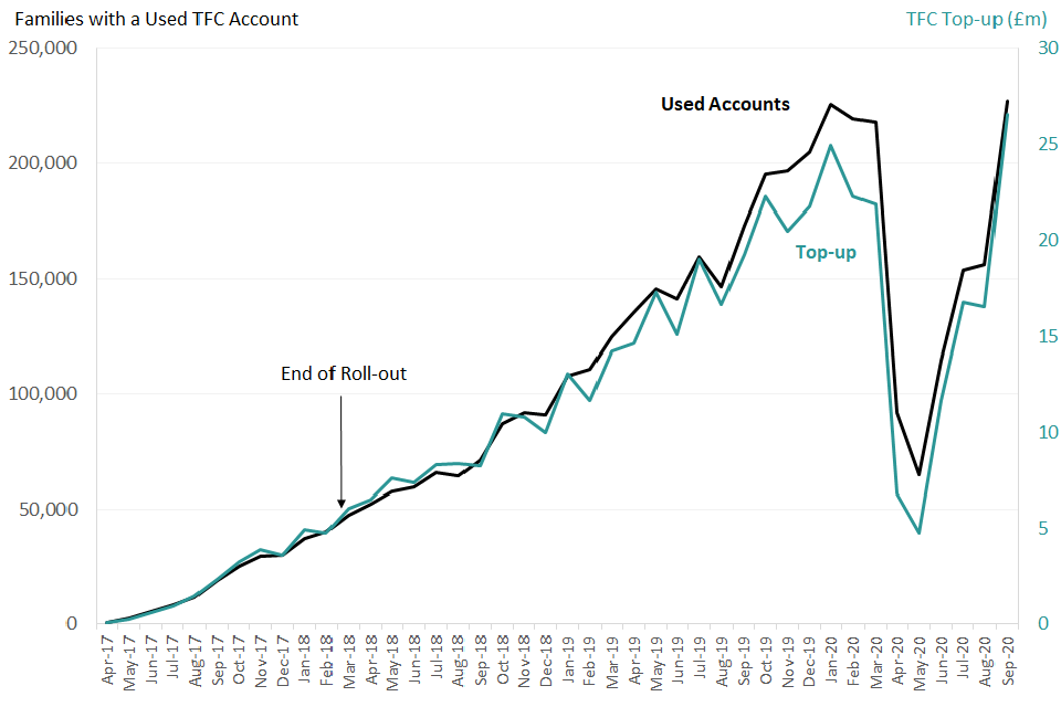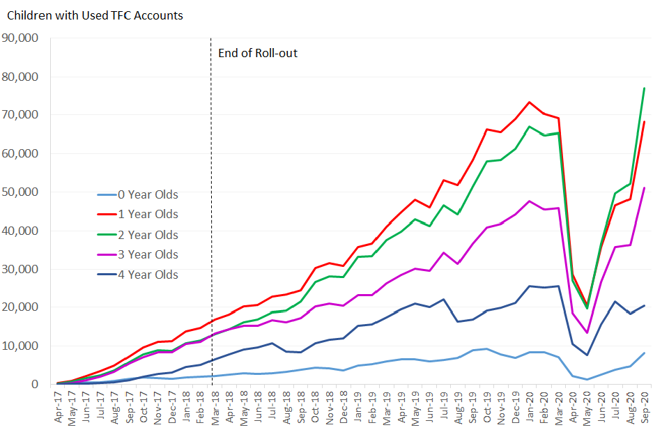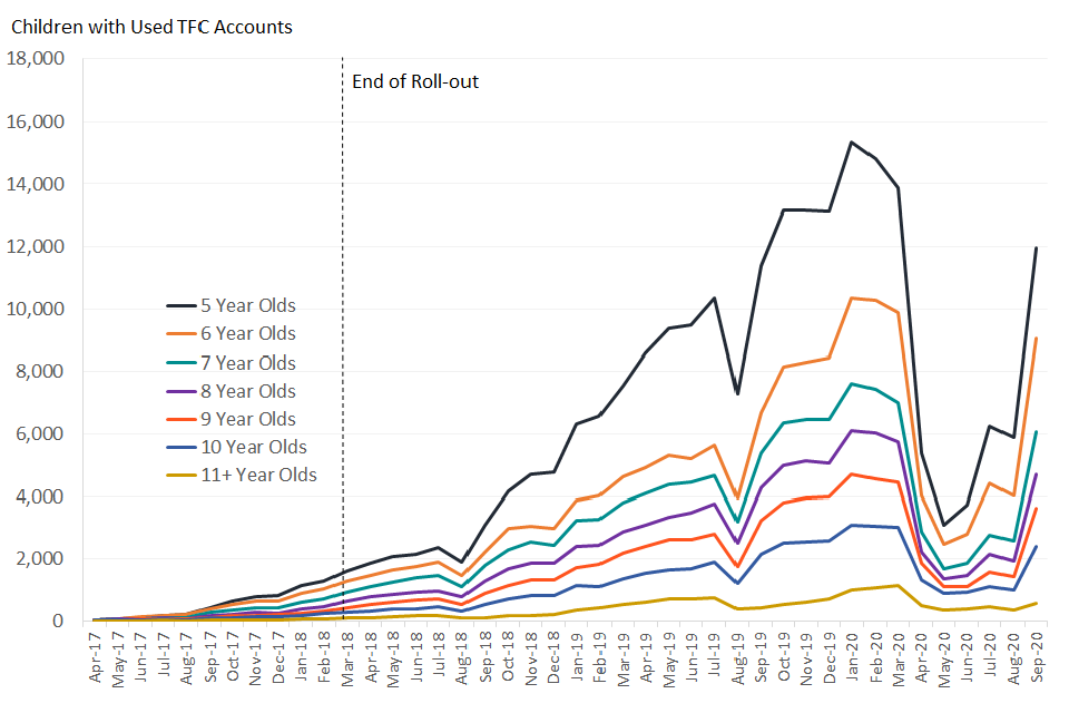 - this increase in Tax-Free Childcare account use coincides with the reopening of childcare settings following the end of the spring 2020 COVID-19 lockdown