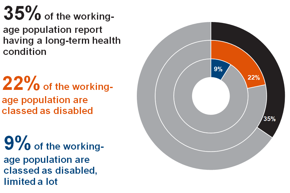 the number of people reporting a long-term health condition or classed as disabled continues to rise