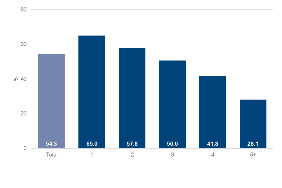 The disability employment gap was 29.8 percentage points in July to September 2022. This is an increase of 1.7 percentage points on the year and an overall decrease of 4.4 percentage points since the same quarter in 2013.
